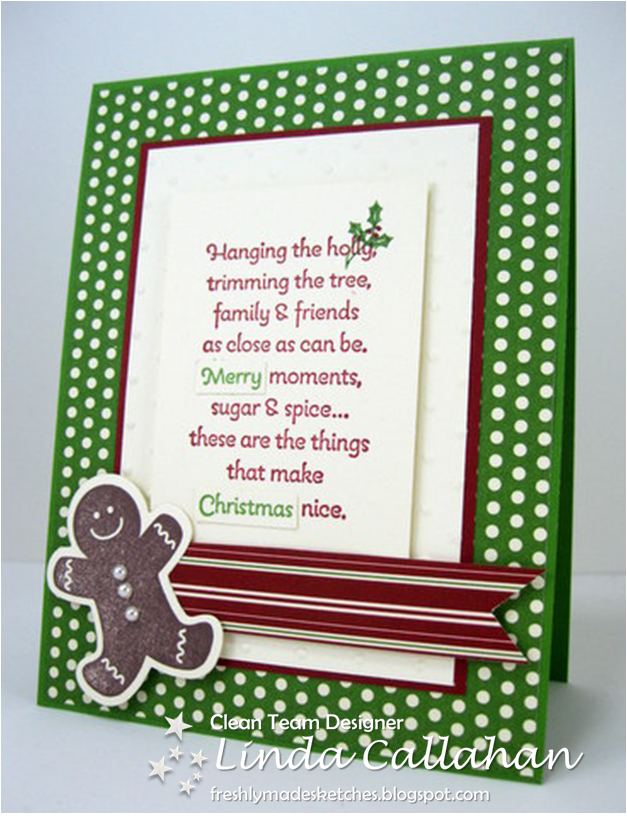 Welcome to Freshly Made Sketches! Each week, one member of our design team creates a sketch for you to try, the twist is to keep your project clean-lined and fresh!The "Clean Team" has come up with some "Freshly Made" designs to get you in the spirit! We are so excited to visit your blog and to see what YOU create with our sketch!
