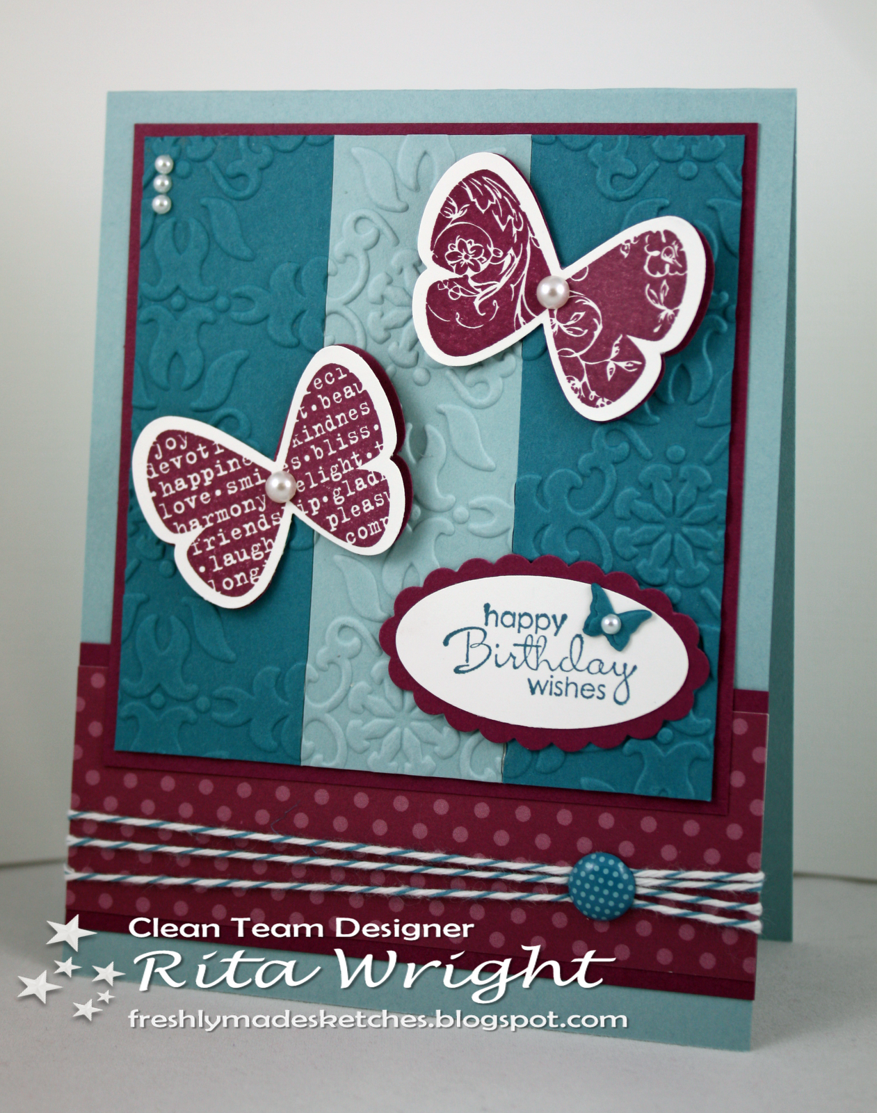 The Freshly Made Design Team and the Paper Players have created a blog hop for Rita this week! It is actually Rita's turn to host the sketch this week and she has created a wonderful sketch for us all to celebrate her with!! She has no idea we have organized this hop!!! Nance Leedy, took Rita's sketch and made it into a wonderful blog hop badge!!! Won't you join us this week, to help Rita celebrate. Just look at the sweet card Rita made for her sketch! Be sure to visit her and leave her some love! We hope you will join our hop to see the wonderful creations by both teams for Rita's sketch this week!