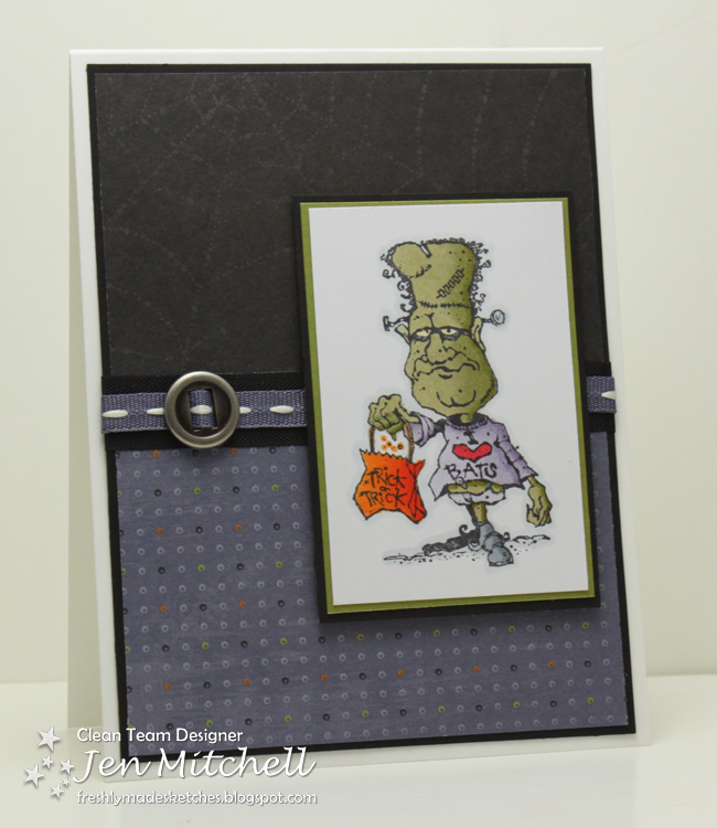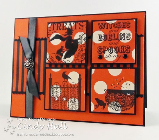 Happy Halloween everyone! It's Cindy here with this week's sketch. I had specific plans for this sketch when I created it, but then I realized that this post would occur on Halloween, so I changed it up so I could use it wish you a Happy Halloween. As you can see with the Clean Team's creations, there are many unique ways to use this sketch to cover many occasions. I hope you can see lots of possibilities with it, too.