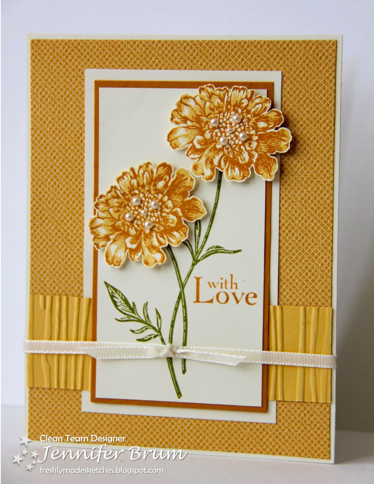 Welcome to Freshly Made Sketches! Each week, one member of our design team creates a sketch for you to try, the twist is to keep your project clean-lined and fresh! The "Clean Team" has come up with some "Freshly Made" designs to get you in the spirit! We are so excited to visit your blog and to see what YOU create with our sketch!