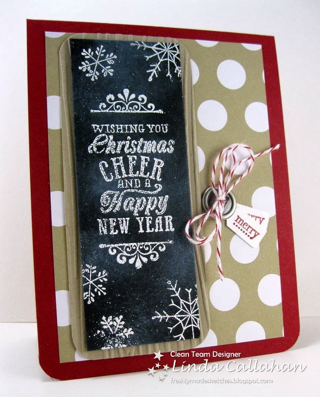 Hello, everyone!  It's Amy here, and I have the privilege of hosting the last sketch of 2013.  Yes, that's right -- 2014 is fast approaching.  With Christmas just one short week away, and everyone scrambling around to get all of their last minute details finished, this will be our last sketch for a little while.  We'll return on January 8th with another sketch to get you going in the new year.  Since everyone is so busy during this time of the year, I designed a very clean sketch that will allow you to use up some of your paper scraps.  I hope you can take a little break from all of the hustle and bustle and spend a little time creating this week.  We wish all of you a very Merry Christmas and a Happy New Year!