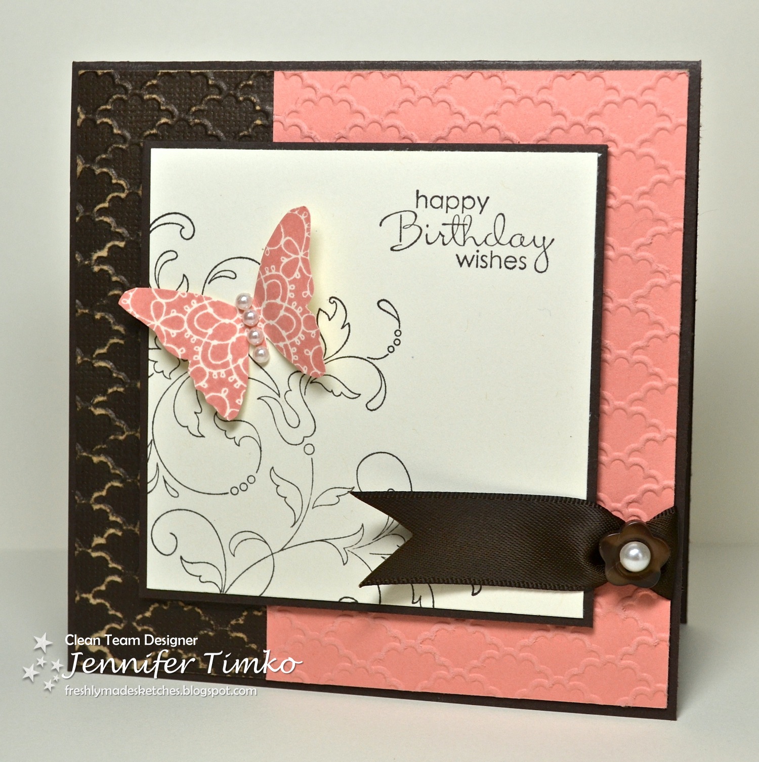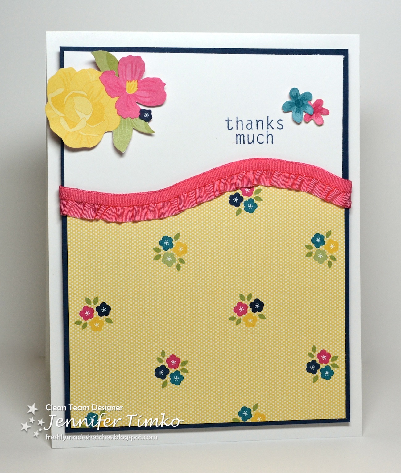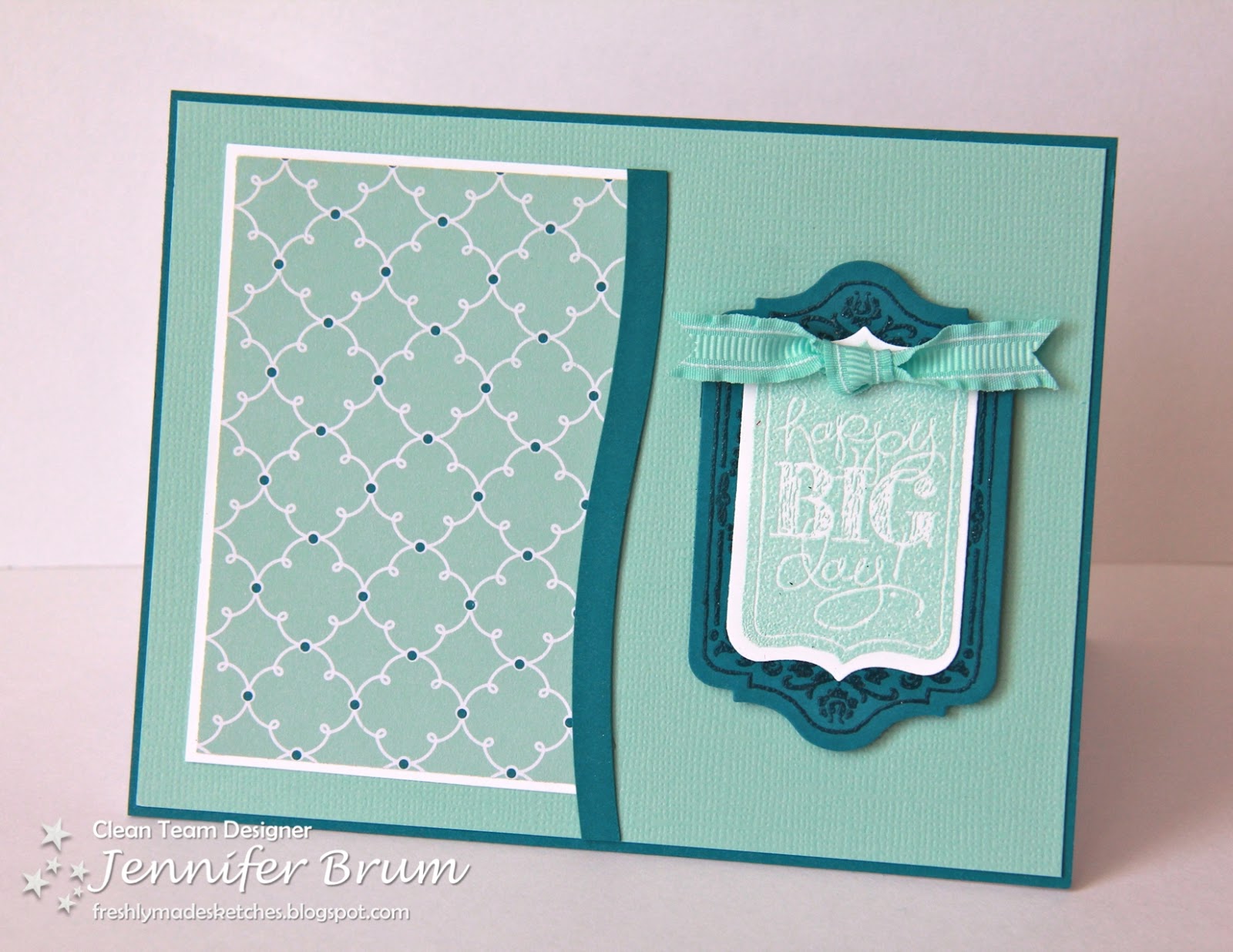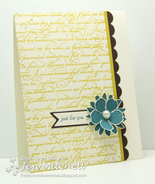 Welcome to Freshly Made Sketches! Each week, one member of our design team creates a sketch for you to try, the twist is to keep your project clean-lined and fresh!The "Clean Team" has come up with some "Freshly Made" designs to get you in the spirit! We are so excited to visit your blog and to see what YOU create with our sketch!