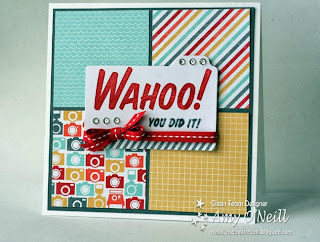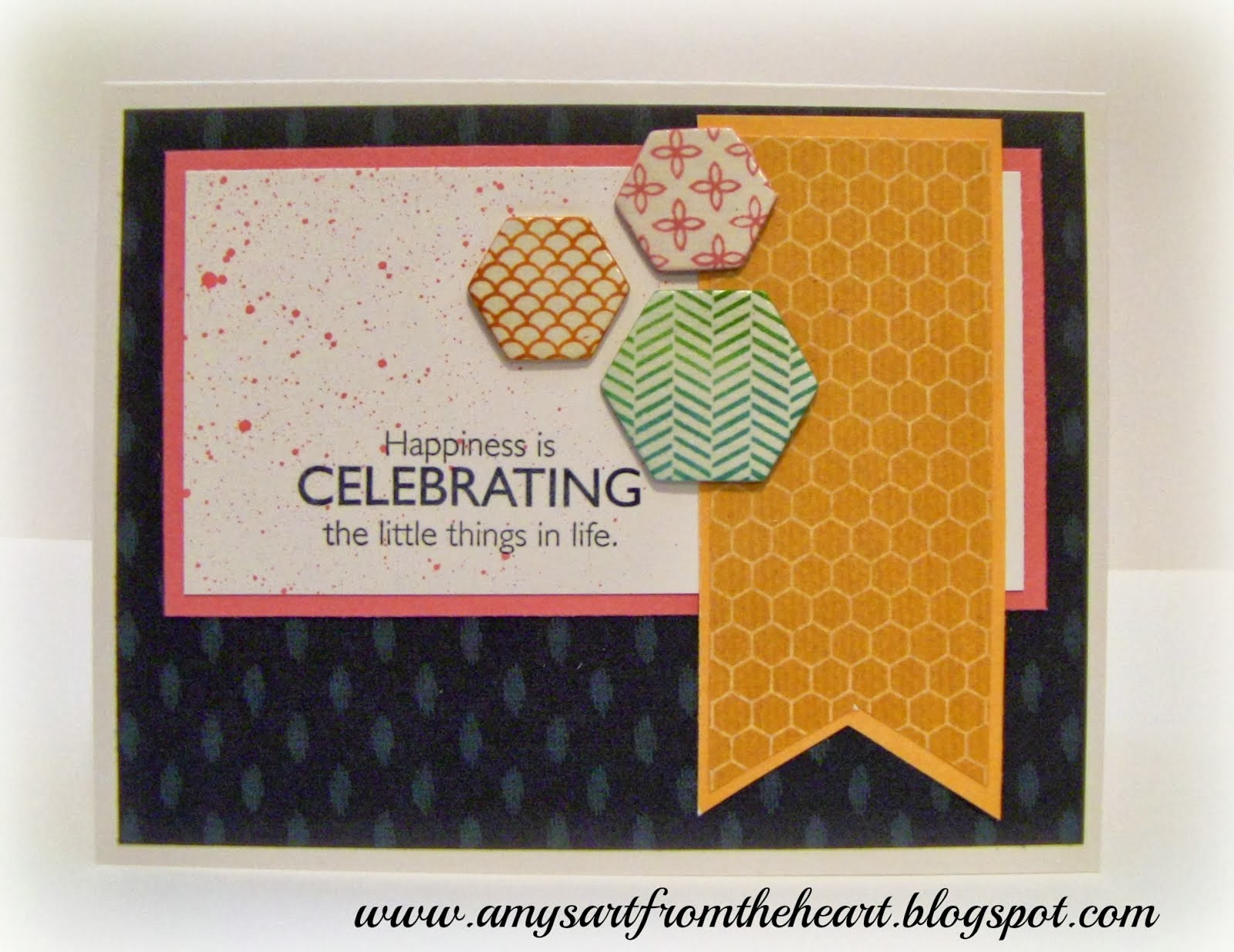 Amy clearly has a knack for combining colors and patterns into a pleasing combination! I just love how it all comes together and how the dark background highlights the colorful hexagons and banner. Congrats, Amy! You're the Queen of Clean this week!