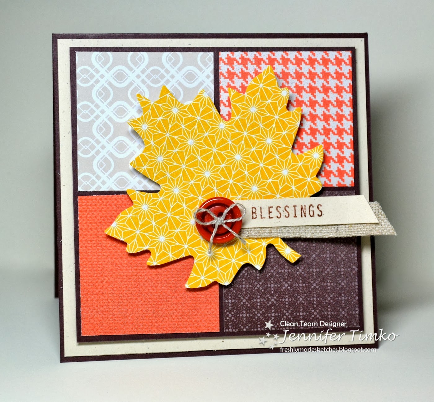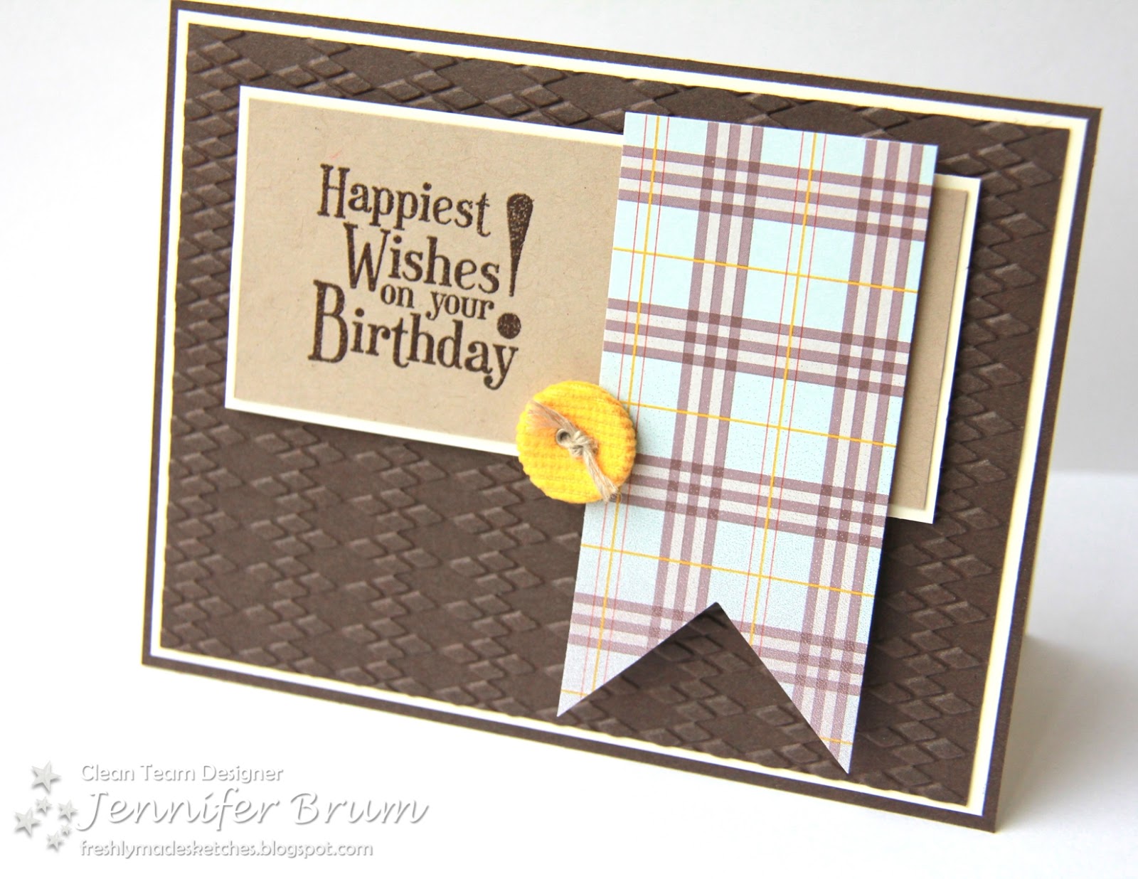Welcome to Freshly Made Sketches! Each week, one member of our design team creates a sketch for you to try, the twist is to keep your project clean-lined and fresh!The "Clean Team" has come up with some "Freshly Made" designs to get you in the spirit! We are so excited to visit your blog and to see what YOU create with our sketch!