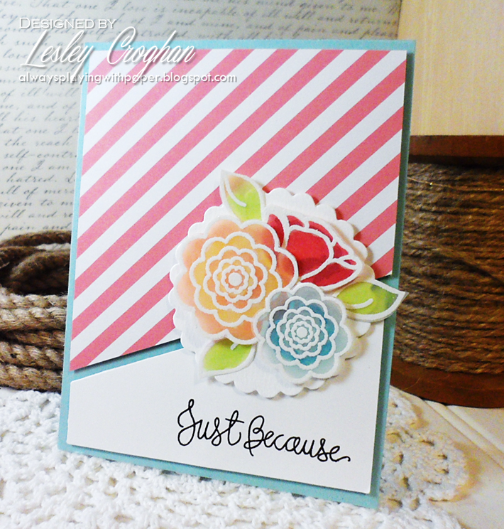 Jen Brum here as your hostess this week! It's always exciting to come up with a sketch that will provide some challenge but not discourage! As you can see, there is a circle! Karren asked me if I was ill when she saw that sitting there! I actually had an idea for a card in mind when I put that there! You don't have to use a circle though - free free to use whatever shape suits your fancy! I can't wait to see all the beautiful cards you come up with!