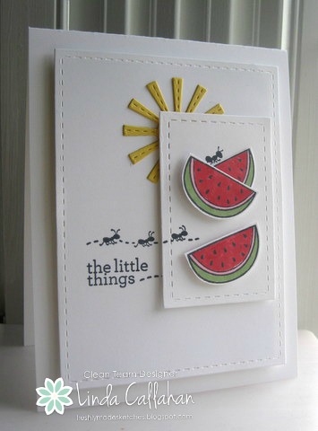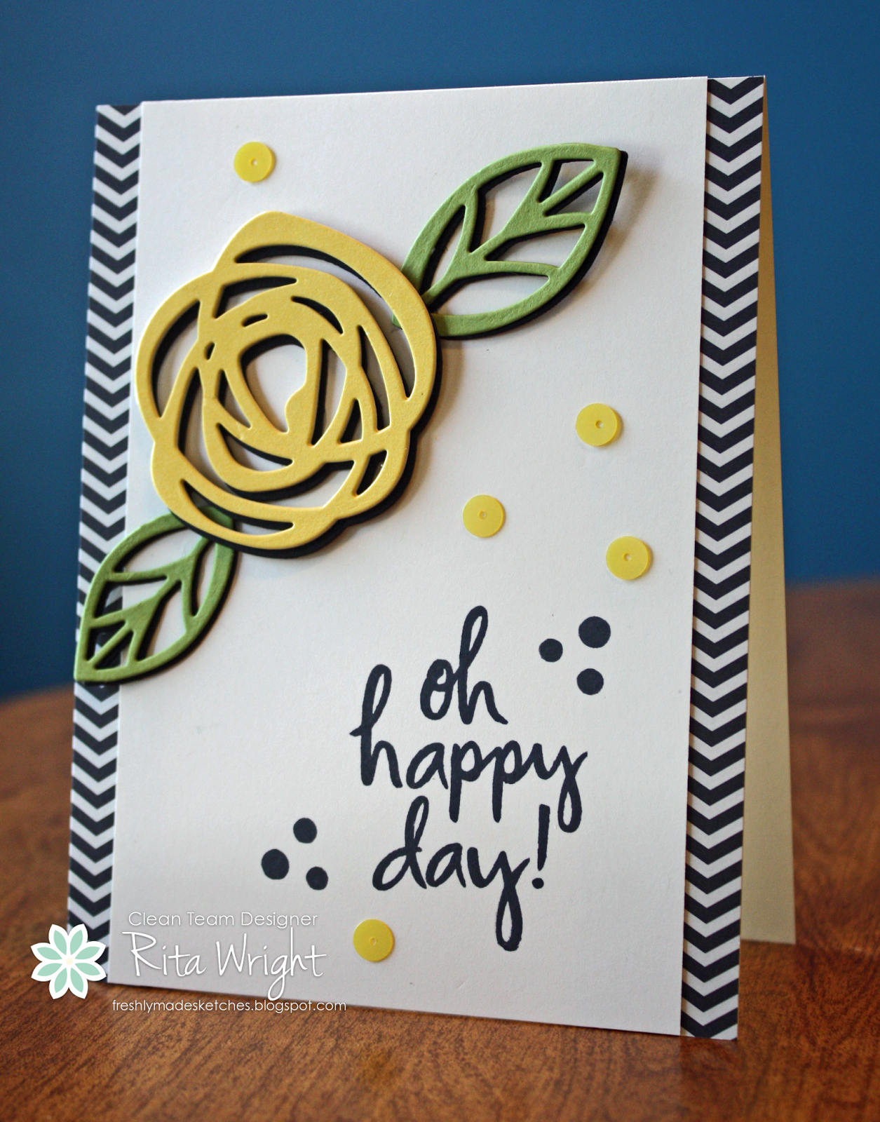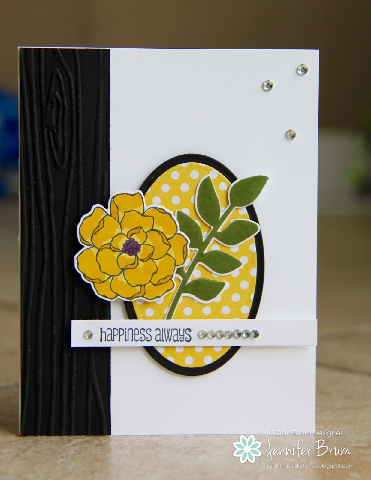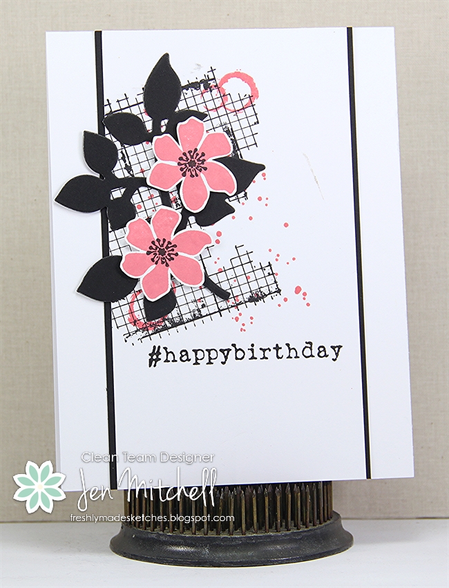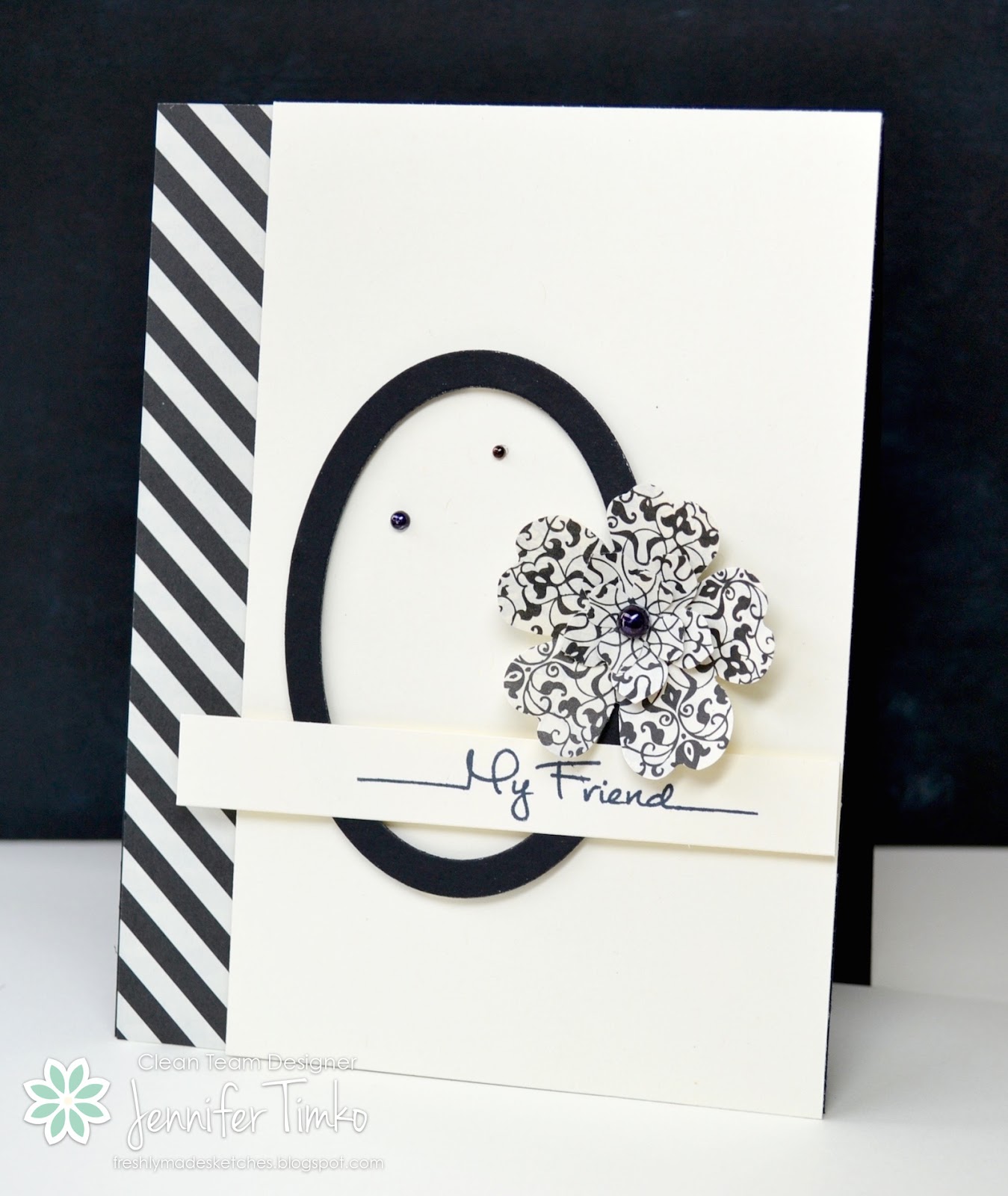 We had 100 fantastic cards in the gallery this week! Thanks to everyone who played along with our sketch! My Queen of Clean is Claire with this beautiful creation. I love how she layered the white on white flowers and leaves against the rich colors of the patterned paper. Such a stunning, eye-catching look! Congratulations Claire!