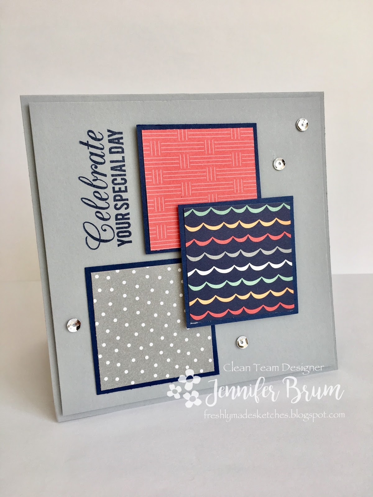 Welcome to Freshly Made Sketches! Each week, one member of our design team creates a sketch for you to try, the twist is to keep your project clean-lined and fresh!The "Clean Team" has come up with some "Freshly Made" designs to get you in the spirit! We are so excited to visit you and to see what YOU create with our sketch!
