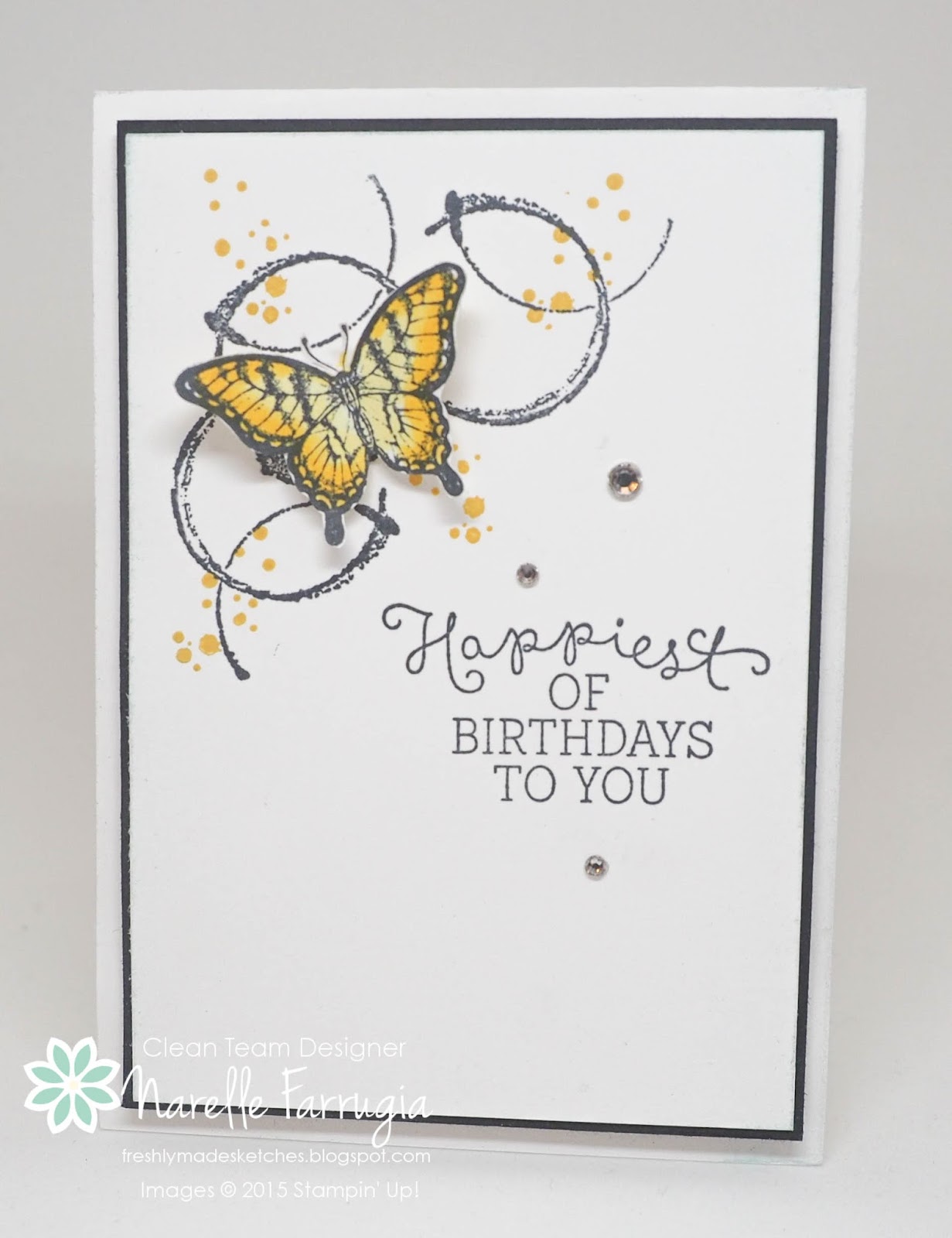 A very special thank you to each one of you who participated in the challenge this week! I can't believe all of the amazing cards that were created! Apparently there aren't too many people out there with the same phobia of circles that I have!!! It was such a tough choice this week but I finally decided to pick Rosemary's beautiful birthday card! I love those rich purple flowers and that sparkly stripe! I love Rosemary's take on the sketch! This card makes me smile! Congratulations Rosemary, you are this week's Queen of Clean!
